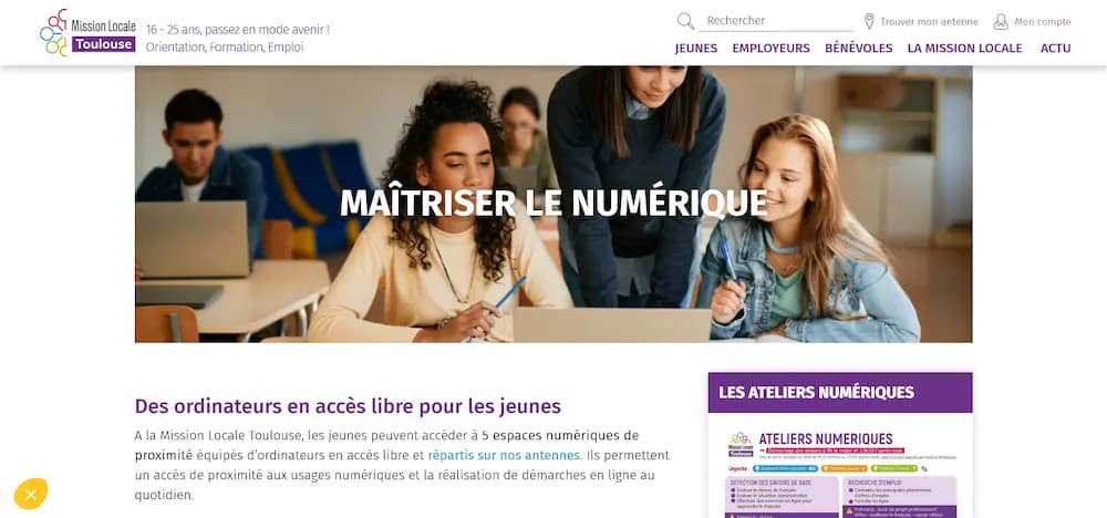 Dédié aux jeunes de 16 à 25 ans, ce dispositif public de l’emploi dépend des services régionaux. Elle dispose d’ordinateurs et de conseiller·es à disposition des usager·es, pour les aider dans leurs démarches. Spécialisée dans l’insertion professionnelle et sociale, la Mission Locale accueille le public en semaine, avec ou sans rendez-vous.