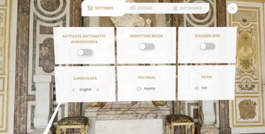 Certains musées proposent aux visiteurs·ses de rester chez soi et de visiter le patrimoine muni d’une casque de réalité virtuelle. L’expérience de réalité virtuelle « VersaillesVR : le Château est à vous » offre la possibilité « d'explorer les Grands Appartements librement, de profiter de contenus culturels et multimédia inédits et de manipuler de nombreuses œuvres et pièces de mobilier d'art sous tous leurs angles ». L’expérience est disponible en français, en anglais ou en chinois. Les visiteurs·ses doivent se munir de leur propre équipement VR, de type Oculus Rift ou HTC Vive.